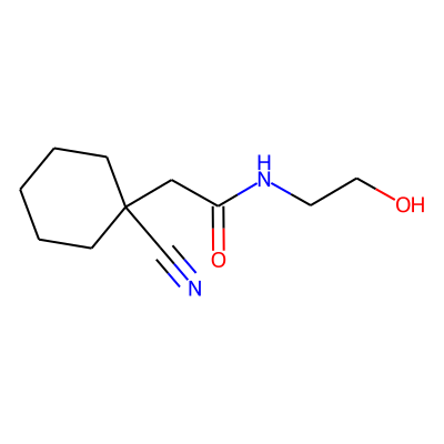 N#CC1(CC(=O)NCCO)CCCCC1| HBA: | 4 | RingCount: | 1 |