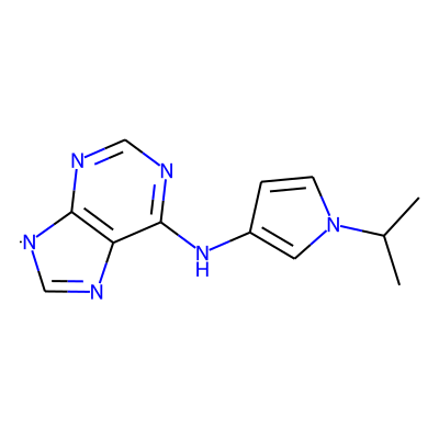 CC(C)n1ccc(Nc2ncnc3c2N=C[N]3)c1| HBA: | 6 | RingCount: | 3 |