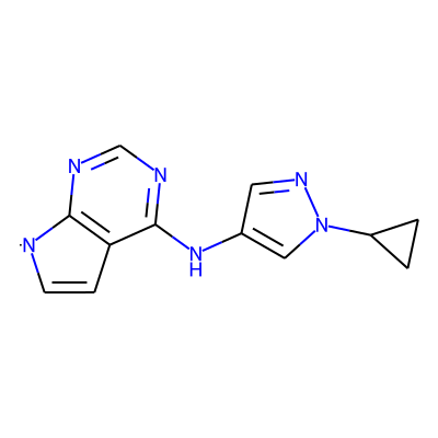 C1=Cc2c(ncnc2Nc2cnn(C3CC3)c2)[N]1| HBA: | 6 | RingCount: | 4 |