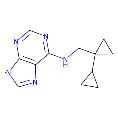 C1=Nc2c(ncnc2NCC2(C3CC3)CC2)[N]1| HBA: | 5 | RingCount: | 4 |