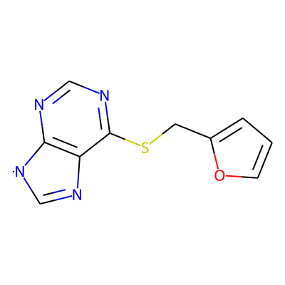 C1=Nc2c(ncnc2SCc2ccco2)[N]1| HBA: | 5 | RingCount: | 3 |