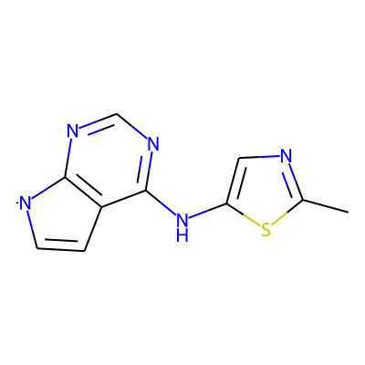 Cc1ncc(Nc2ncnc3c2C=C[N]3)s1| HBA: | 5 | RingCount: | 3 |