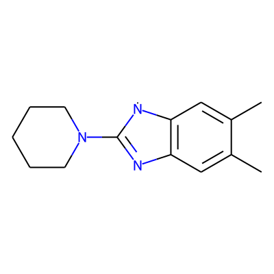 Cc1cc2c(cc1C)N=C(N1CCCCC1)[N]2| HBA: | 3 | RingCount: | 3 |
