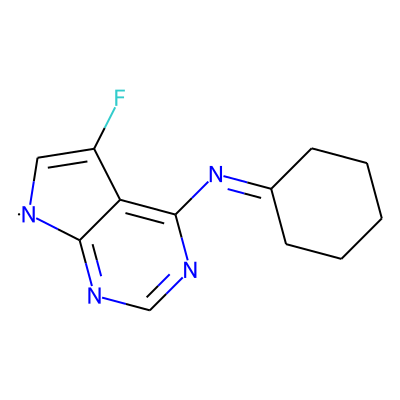 FC1=C[N]c2ncnc(N=C3CCCCC3)c21| HBA: | 4 | RingCount: | 3 |