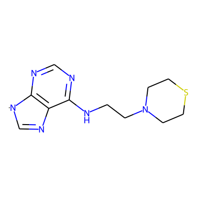 C1=Nc2c(ncnc2NCCN2CCSCC2)[N]1| HBA: | 6 | RingCount: | 3 |
