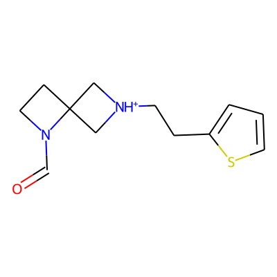 O=CN1CCC12C[NH+](CCc1cccs1)C2| HBA: | 3 | RingCount: | 3 |