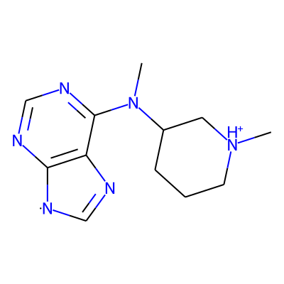CN(c1ncnc2c1N=C[N]2)C1CCC[NH+](C)C1| HBA: | 6 | RingCount: | 3 |