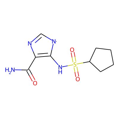 NC(=O)C1=C(NS(=O)(=O)C2CCCC2)[N]C=N1| HBA: | 7 | RingCount: | 2 |