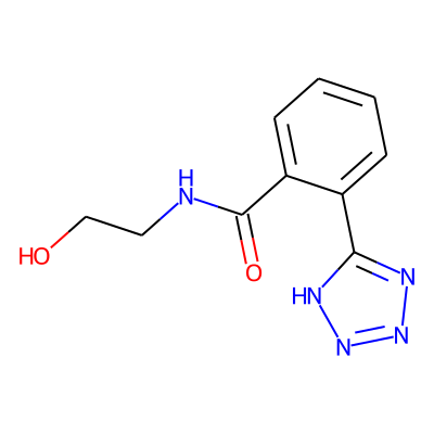 O=C(NCCO)c1ccccc1-c1nnn[nH]1| HBA: | 7 | RingCount: | 2 |