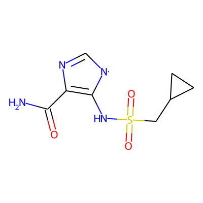 NC(=O)C1=C(NS(=O)(=O)CC2CC2)[N]C=N1| HBA: | 7 | RingCount: | 2 |