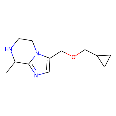 CC1NCCn2c(COCC3CC3)cnc21| HBA: | 4 | RingCount: | 3 |