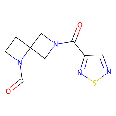 O=CN1CCC12CN(C(=O)c1cnsn1)C2| HBA: | 6 | RingCount: | 3 |