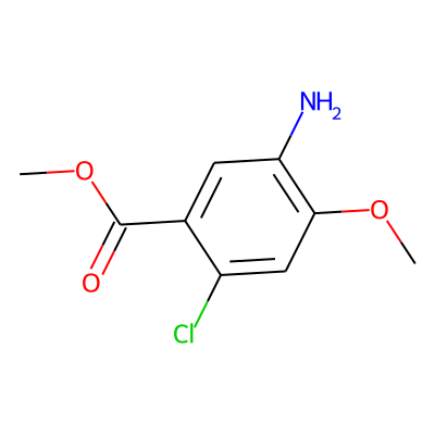 COC(=O)c1cc(N)c(OC)cc1Cl| HBA: | 4 | RingCount: | 1 |