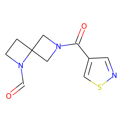 O=CN1CCC12CN(C(=O)c1cnsc1)C2| HBA: | 5 | RingCount: | 3 |