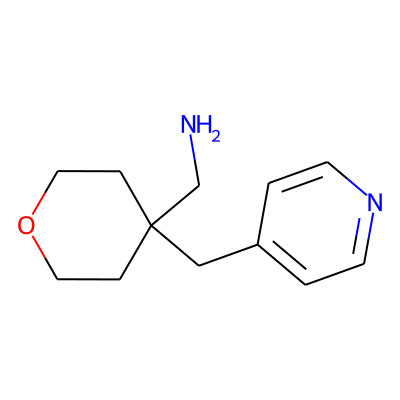 NCC1(Cc2ccncc2)CCOCC1| HBA: | 3 | RingCount: | 2 |