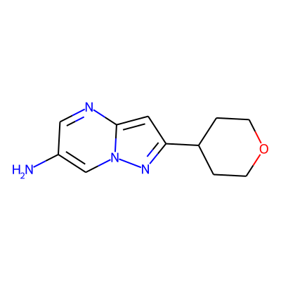 Nc1cnc2cc(C3CCOCC3)nn2c1| HBA: | 5 | RingCount: | 3 |