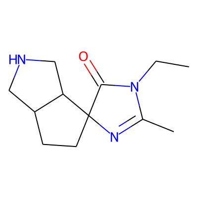 CCN1C(=O)C2(CCC3CNCC32)N=C1C| HBA: | 4 | RingCount: | 3 |