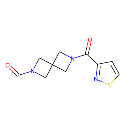 O=CN1CC2(C1)CN(C(=O)c1ccsn1)C2| HBA: | 5 | RingCount: | 3 |