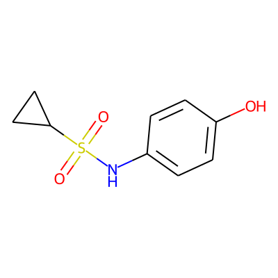 O=S(=O)(Nc1ccc(O)cc1)C1CC1| HBA: | 4 | RingCount: | 2 |