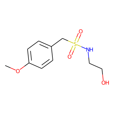 COc1ccc(CS(=O)(=O)NCCO)cc1| HBA: | 5 | RingCount: | 1 |