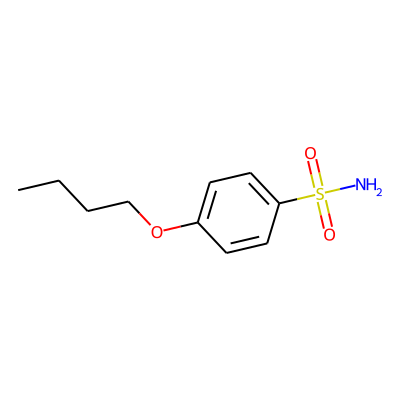 CCCCOc1ccc(S(N)(=O)=O)cc1| HBA: | 4 | RingCount: | 1 |