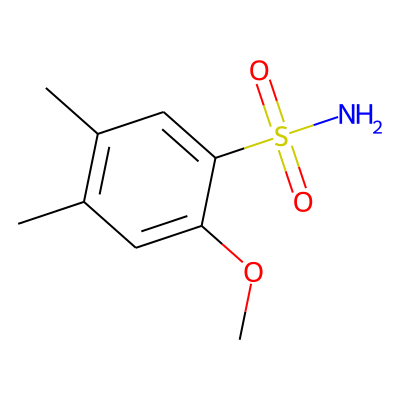 COc1cc(C)c(C)cc1S(N)(=O)=O| HBA: | 4 | RingCount: | 1 |