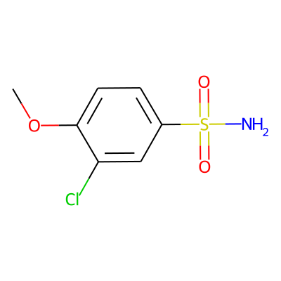 COc1ccc(S(N)(=O)=O)cc1Cl| HBA: | 4 | RingCount: | 1 |