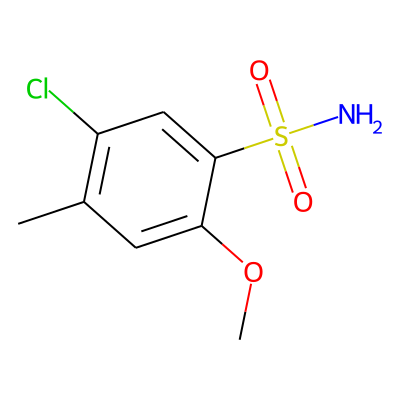 COc1cc(C)c(Cl)cc1S(N)(=O)=O| HBA: | 4 | RingCount: | 1 |