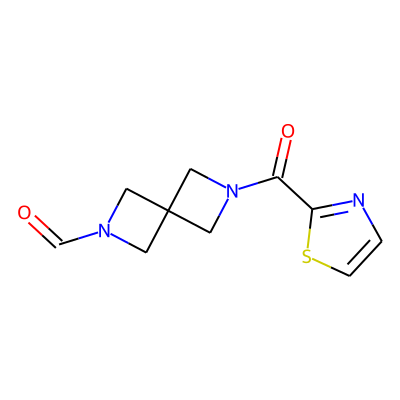 O=CN1CC2(C1)CN(C(=O)c1nccs1)C2| HBA: | 5 | RingCount: | 3 |