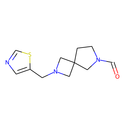 O=CN1CCC2(C1)CN(Cc1cncs1)C2| HBA: | 4 | RingCount: | 3 |