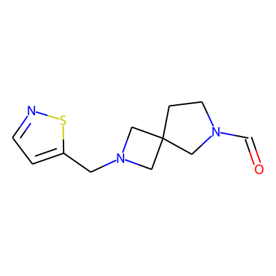 O=CN1CCC2(C1)CN(Cc1ccns1)C2| HBA: | 4 | RingCount: | 3 |