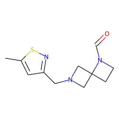 Cc1cc(CN2CC3(CCN3C=O)C2)ns1| HBA: | 4 | RingCount: | 3 |
