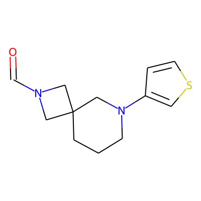 O=CN1CC2(CCCN(c3ccsc3)C2)C1| HBA: | 3 | RingCount: | 3 |