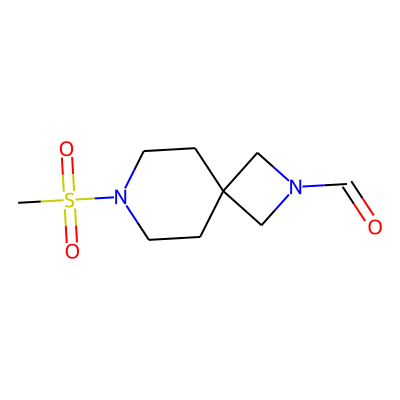 CS(=O)(=O)N1CCC2(CC1)CN(C=O)C2| HBA: | 5 | RingCount: | 2 |