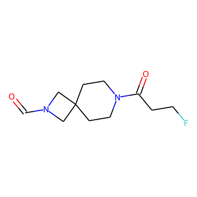 O=CN1CC2(CCN(C(=O)CCF)CC2)C1| HBA: | 4 | RingCount: | 2 |