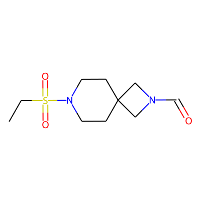 CCS(=O)(=O)N1CCC2(CC1)CN(C=O)C2| HBA: | 5 | RingCount: | 2 |