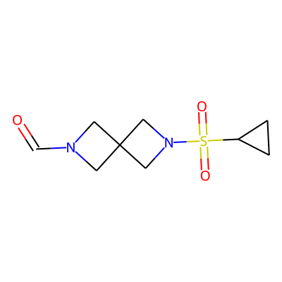 O=CN1CC2(C1)CN(S(=O)(=O)C1CC1)C2| HBA: | 5 | RingCount: | 3 |