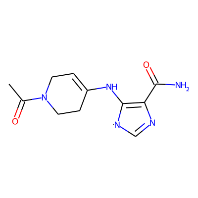 CC(=O)N1CC=C(NC2=C(C(N)=O)N=C[N]2)CC1| HBA: | 7 | RingCount: | 2 |