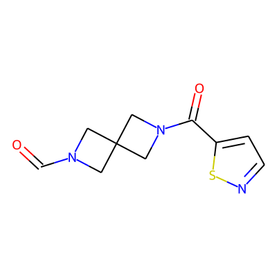 O=CN1CC2(C1)CN(C(=O)c1ccns1)C2| HBA: | 5 | RingCount: | 3 |