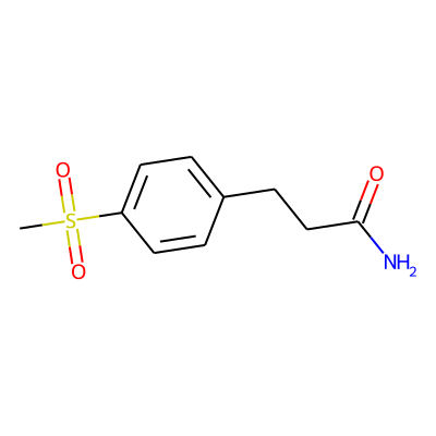 CS(=O)(=O)c1ccc(CCC(N)=O)cc1| HBA: | 4 | RingCount: | 1 |