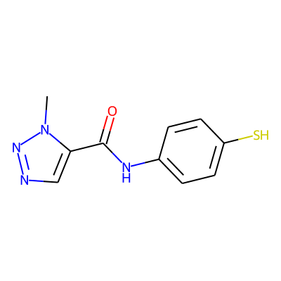 Cn1nncc1C(=O)Nc1ccc(S)cc1| HBA: | 5 | RingCount: | 2 |
