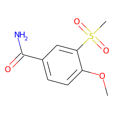 COc1ccc(C(N)=O)cc1S(C)(=O)=O| HBA: | 5 | RingCount: | 1 |