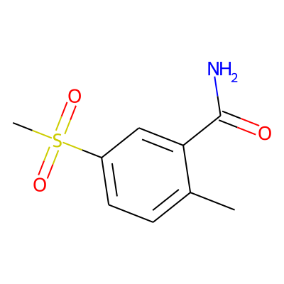 Cc1ccc(S(C)(=O)=O)cc1C(N)=O| HBA: | 4 | RingCount: | 1 |