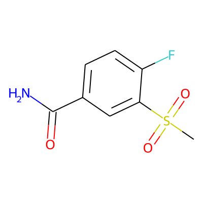 CS(=O)(=O)c1cc(C(N)=O)ccc1F| HBA: | 4 | RingCount: | 1 |