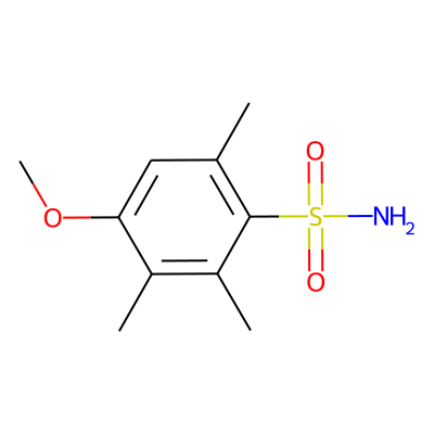 COc1cc(C)c(S(N)(=O)=O)c(C)c1C| HBA: | 4 | RingCount: | 1 |