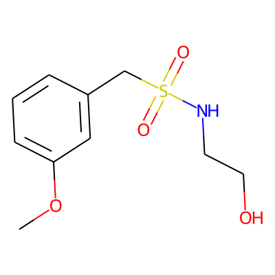 COc1cccc(CS(=O)(=O)NCCO)c1| HBA: | 5 | RingCount: | 1 |