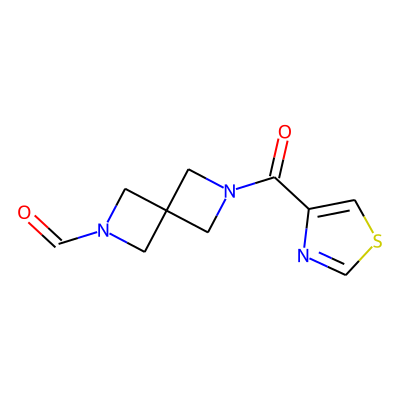 O=CN1CC2(C1)CN(C(=O)c1cscn1)C2| HBA: | 5 | RingCount: | 3 |