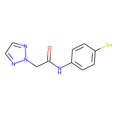 O=C(Cn1nccn1)Nc1ccc(S)cc1| HBA: | 5 | RingCount: | 2 |