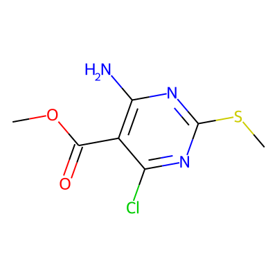 COC(=O)c1c(N)nc(SC)nc1Cl| HBA: | 5 | RingCount: | 1 |