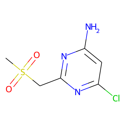 CS(=O)(=O)Cc1nc(N)cc(Cl)n1| HBA: | 5 | RingCount: | 1 |